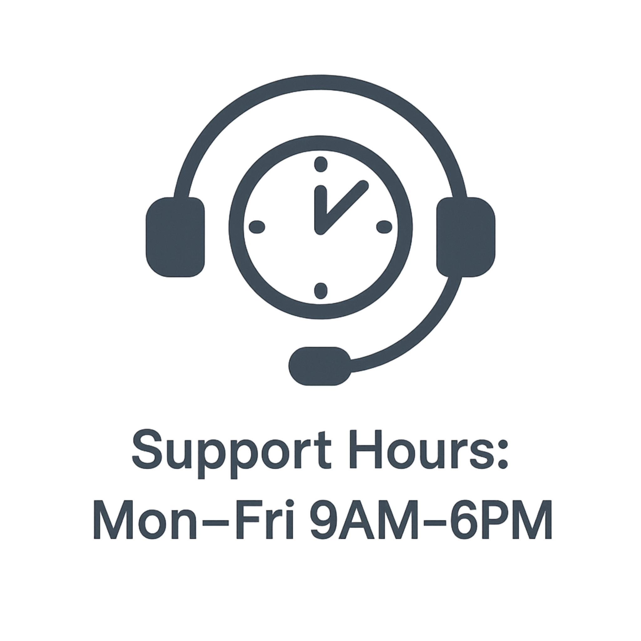 Service Monday to Saturday. 9:00 am to 6:00 pm.